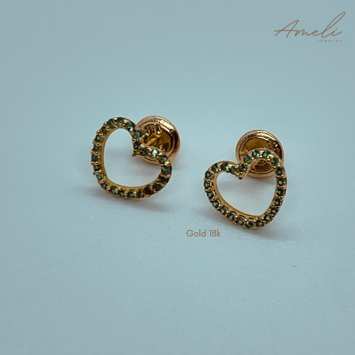GREEN HEART EARRIGNS (9 mm diameter) - Gold 18K